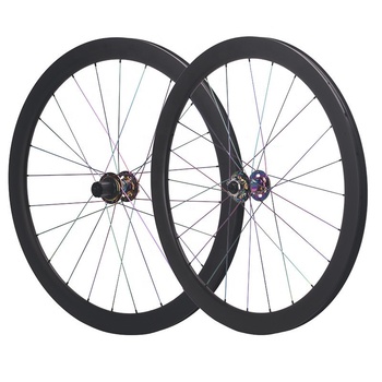 Set di ruote stradali in fibra di carbonio 700C con freno a disco di altezza 46mm in acciaio inossidabile con raggi colorati ruote per bici tipo di cerchio